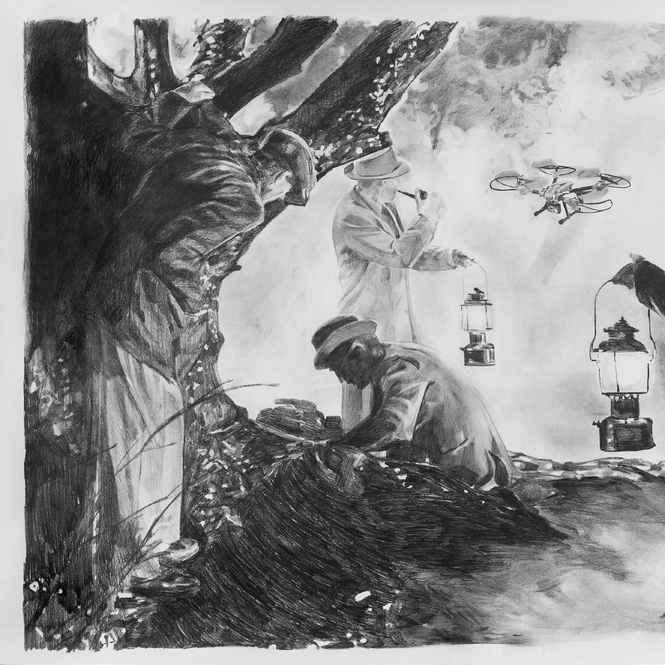 Grafite e lápis de cor sobre papel, 70x100 cm, 2021 pormenor