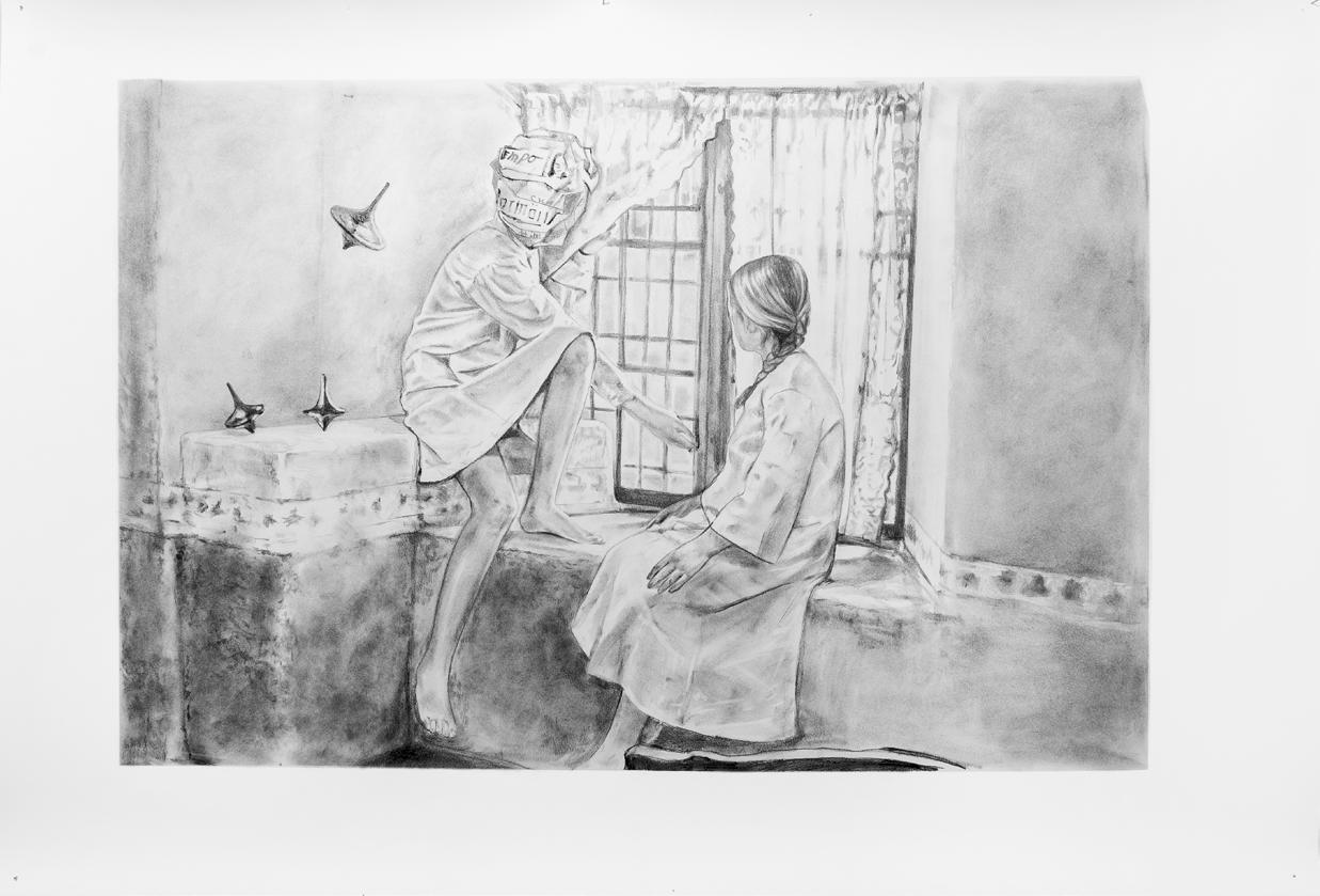 The first casualty of war is truth, Carvão e grafite sobre papel, 120x129 cm, 2023 página anterior