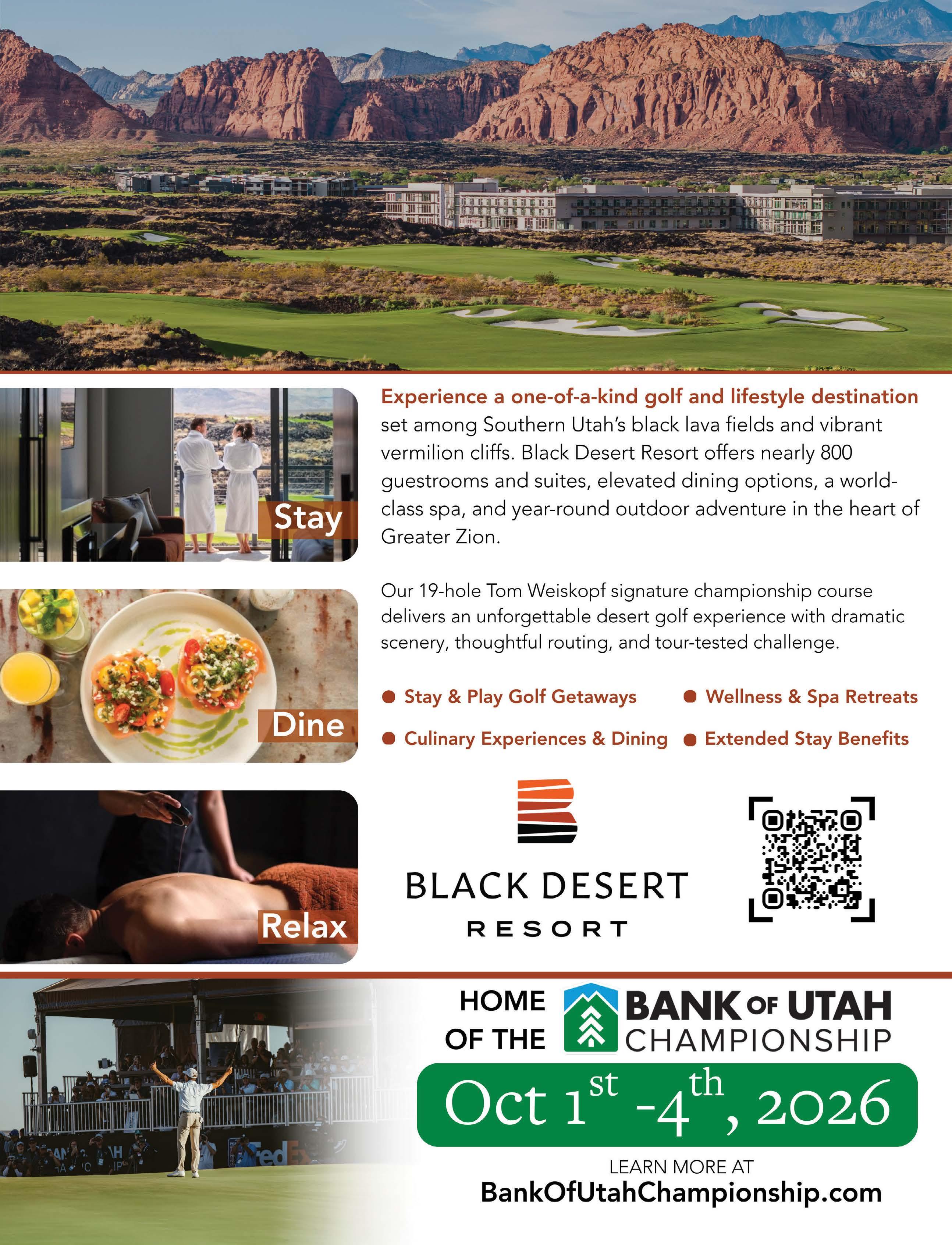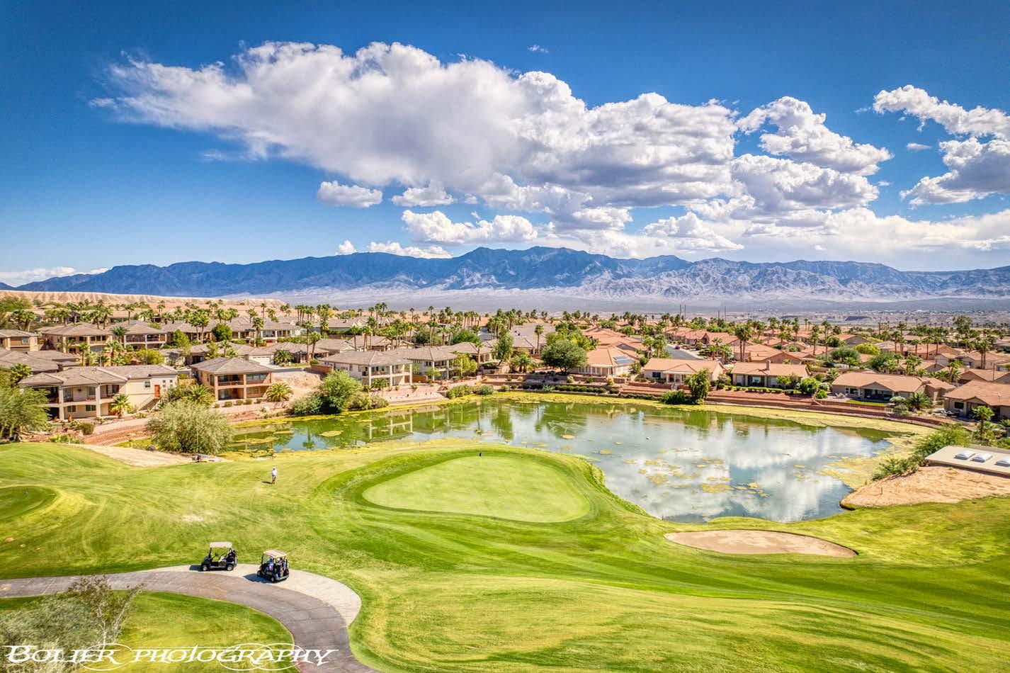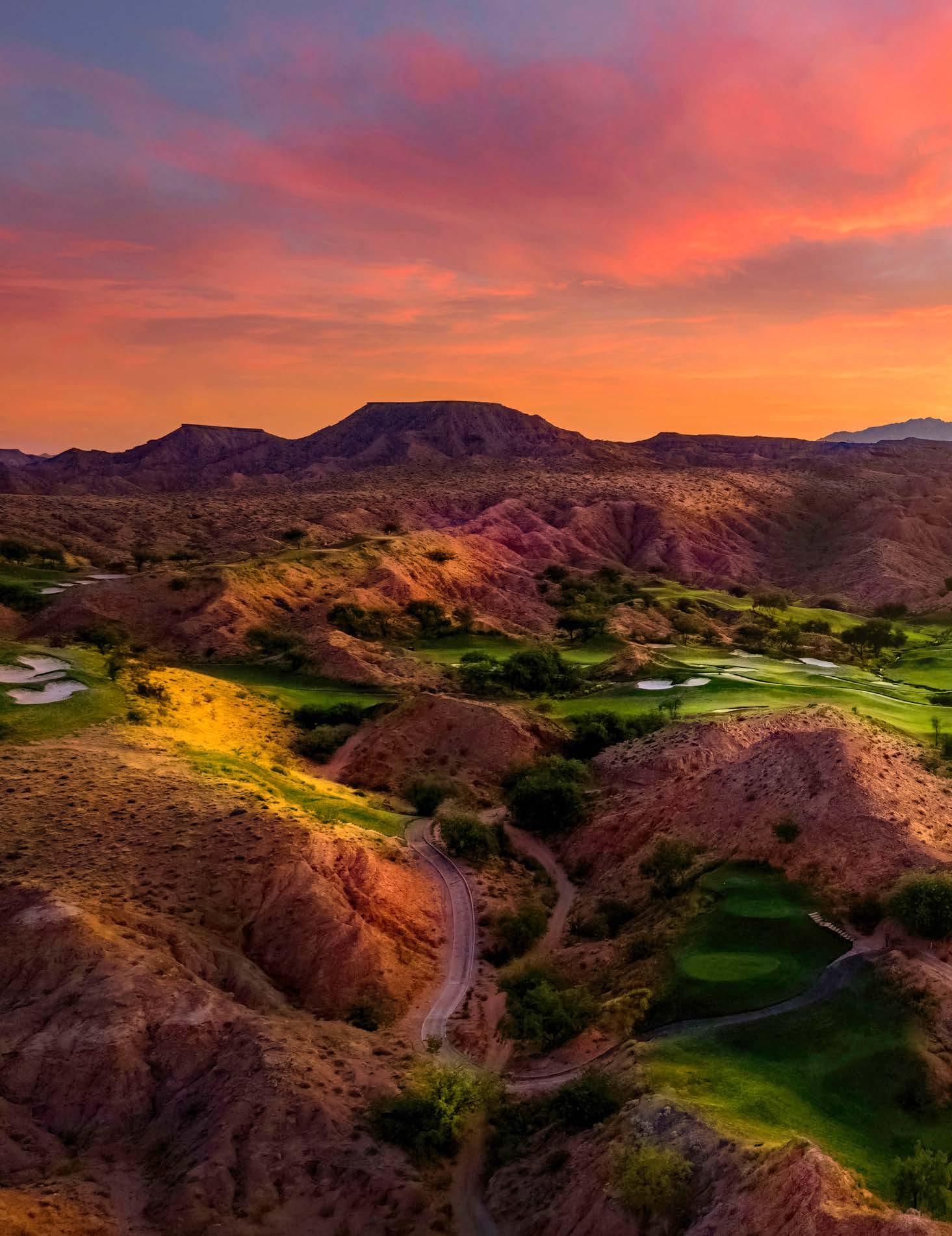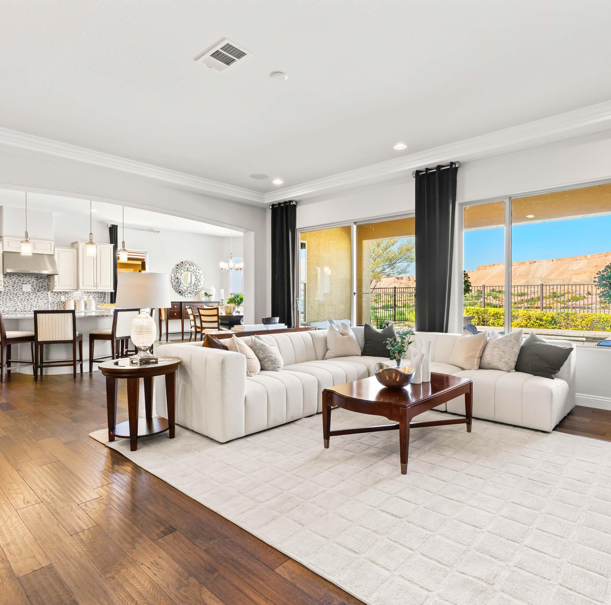 This year’s cover highlights the beautiful Sun City Mesquite community by Del Webb/Pulte Homes. Set against the Virgin Mountains, this aerial shot showcases thoughtfully designed homes, the fairway of hole #9 at Conestoga Golf Club, and the impressive Pioneer Center recreation facility. This 30,000-square-foot center offers indoor and outdoor pools, fitness facilities, sports courts, an 18-hole putting course, arts & crafts spaces, a library, and scenic walking trails. Pulte Homes continues to grow Mesquite with its newest community, Suntero, offering singlestory homes designed for comfortable indooroutdoor living in a stunning desert setting.