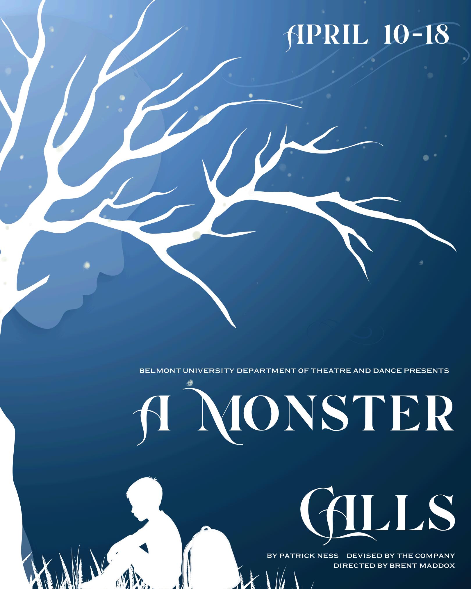 First published in 2011, A Monster Calls, written by Patrick Ness, became a critically acclaimed, bestselling novel among children and adults alike. It garnered huge success, including an unprecedented double win of the Carnegie and Greenaway Medals for outstanding children’s literature and illustration. It was then adapted into a movie in 2016, featuring Liam Neeson as the Monster’s voice. In 2018, the play was published and first produced by the Bristol Old Vic Theatre, transferring to The Old Vic in London, where it won the 2019 Olivier Award for Best Entertainment and Family. Today’s production is brought to the stage in a powerful new adaptation by Belmont University’s Department of Theatre and Dance as part of their 2025-26 Production Season.