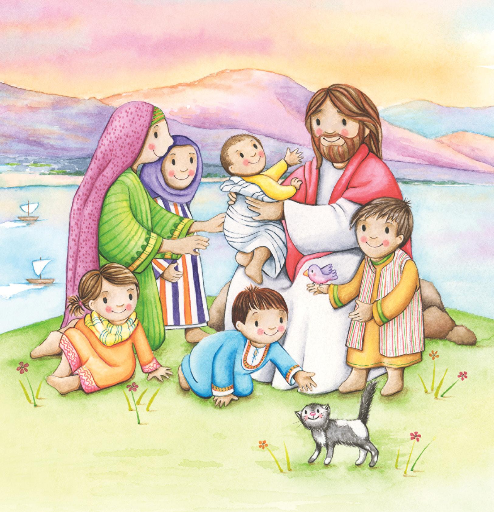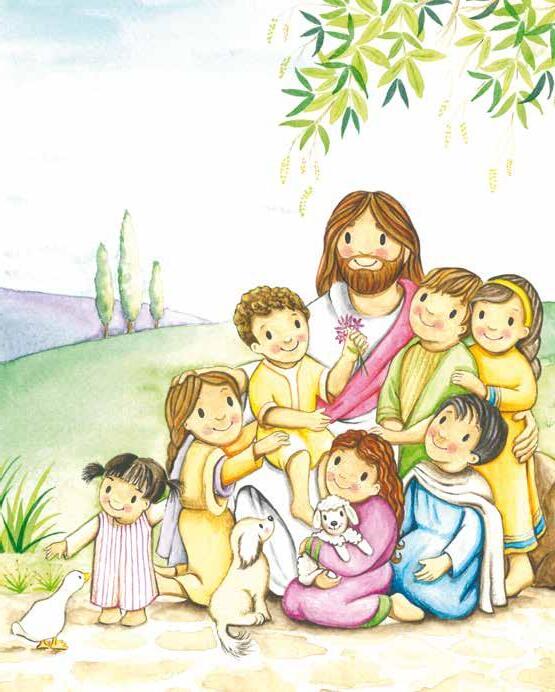 Los niños estaban muy contentos y Jesús oró por ellos. ¡Jesús ama a los niños! Los niños son importantes para Dios.