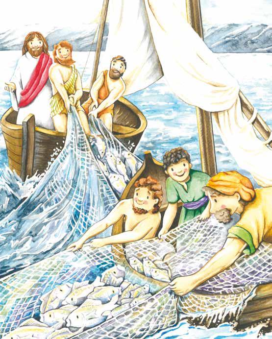 Jesús le dijo a Pedro: “Vuelve a intentarlo y pescarás”. Los amigos salieron en en su barca de nuevo. Esta vez había muchos peces.