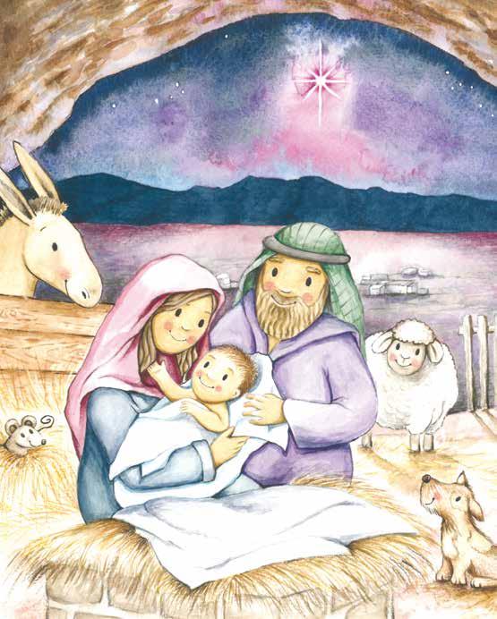 María y José viajaron a Belén. Estaban cansados, pero el único lugar donde alojarse era un establo. El Niño Jesús nació esa noche.