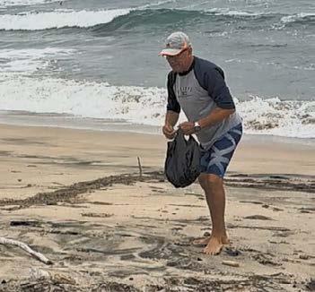 Además en la estación D, los esposos realizan actividad social-ambiental; limpian la playa de plásticos, determinan su origen, su masa (o peso). En cinco años han determinado que los plásticos se acumulan a una tasa de 600 g/semana, aproximadamente, a veces mucho