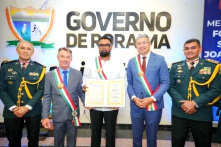 The Government of Roraima has conferred its highest honour, the Order of Merit Fort São Joaquim, on Guyana’s President Dr Mohamed Irfaan Ali, recognising his leadership in strengthening economic relations between Guyana and the northern Brazilian state