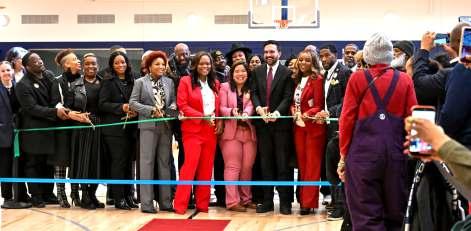 Mayor Zohran Mamdani with city ofcials cutting the ribbon for the ofcial opening of the Shirley Chisholm Recreation Center