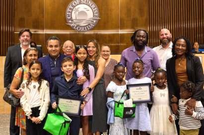 Cleyanna Dorvil and Maximus Ubillus from the City of Sunrise Youth Recrea on Soccer program were recognized for