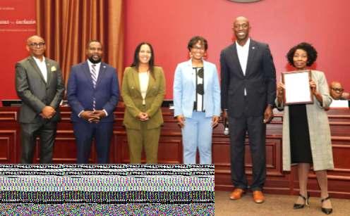 The en re Miramar Commission presented a proclama on to mental health nurse prac oner Dr. Gerda Williams (right) as they celebrated January as Na onal Mental Wellness Month
