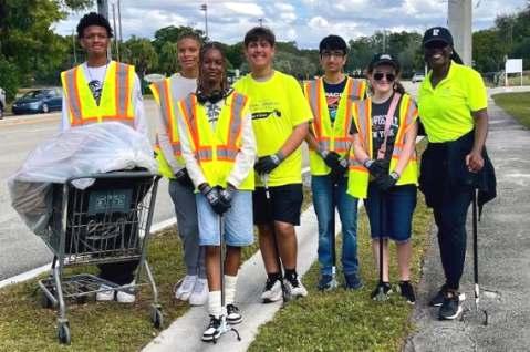 Hai an-American Coral Springs Vice Mayor Nancy Metayer Bowen (right) par cipated in a clean-up project in the city with teens for America Recycles Day on November 15th