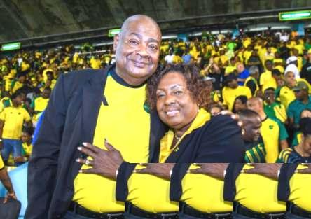 Jamaicas Minister of Sport Olivia “Babsy” Grange is pictured with Michael Ricke s, president of the Jamaica Football Federa on, at the Na onal Stadium in Kingston on Tuesday for the Jamaica vs Curacoa match