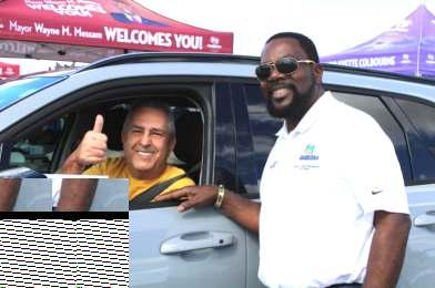 Miramar Commissioner Maxwell Chambers is pictured with a resident during a recent Food Distribu on & Turkey Giveaway Drive-Thru this week