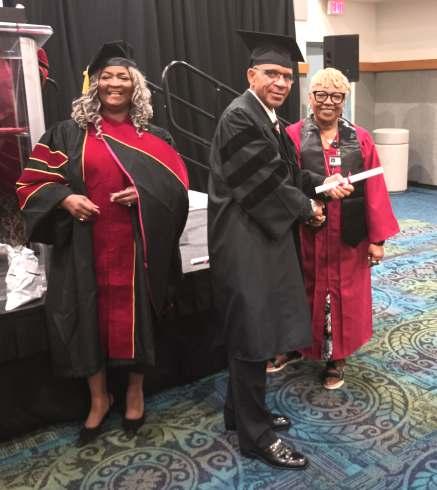 Radio Personality, Weston Smith "Bro Wes" being presented with his doctoral degree from World Wide Professional Chaplain Ambassadors, by Dr. Ann MChetham, while DrMarilyn Walker, (Both of World Wide Professional) looks on. – Contributed