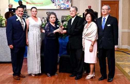 Meritorious Service Award presented to Marie Buteau at the Friends of Good Shepherd Interna onals Fundraising Gala which was held last Saturday evening June 3rd at the Double Tree by Hilton Hotel in Sunrise Florida. (L-R): FOGS President Andrew Foreman, VP: Gina Tulloch-Adams, Marie Buteau, Most Rev. Charles Dufour, FOGS Secretary Elaine Kong, FOGS Treasurer, Monty Kong. – Contributed