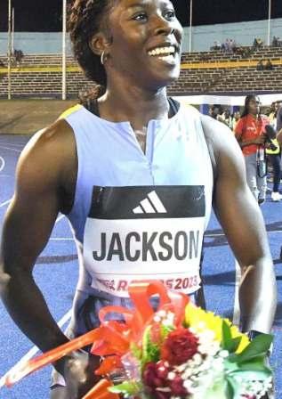 Jackson, last year ’ s silver medalist at the 100m and the 200m gold medalist at the World Championships in Eugene, Oregon, USA, sped to a smashing Meet Record of 10 78 seconds to beast a decent field inside Kingston’s National Stadium