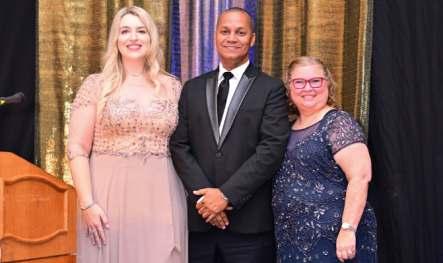 from L-R: Dr. Laura Hochstein (Countyline Chiroprac c Medical & Rehab Centers), Chester Bishop(KCLL), Maria Pazos (Countyline Chiroprac c Medical & Rehab Centers) at the silver anniversary of the Kiwanis Club of Lauderdale Lakes (KCLL) at the club’s Annual Grand Charity Ball. The event was held at the Hilton Fort Lauderdale Marina