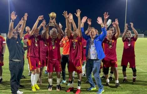 Consul General Oliver Mair (in blue) congratulates the Wolmers Boys team who defeated Campion College 2-1 on Sunday, September 10 at the Central Regional Park in Broward Students in Jamaica benefit from the proceeds of the weekend’s ac vi es