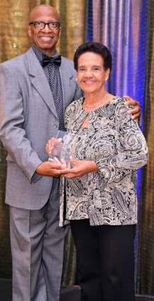 Barrington Nugent (KCLL) with one of this year’s honorees, Esmie Reddie-Brown (Reddies Place of Safety) at the Kiwanis Club’s Annual Grand Charity Ball