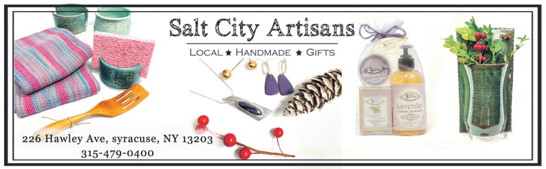 Speaking of food, we’re so excited about Louise, Everson Museum of Art’s new cafe, and the literally one-of-a-kind experience it offers, plus She Fancy gives us a creative take on salt potatoes. We also head north to explore Oswego, beat the winter blues, meet a Renaissance woman turning her passions into products, and talk to married screenwriters who create holiday magic from their Manlius home. Additionally, we witness the contentment of a young man who finally has a loving home of his own, and we suggest ideas in our annual local holiday gift guide to delight family and friends.