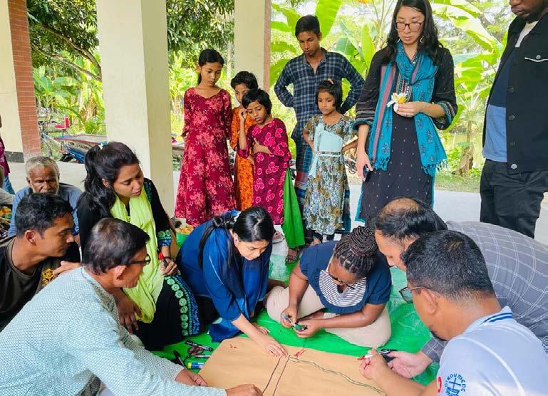 Research on women’s learning ecologies in coastal Bangladesh explored the everyday lives of women participating in ENGAGE activities, using semi-structured interviews to understand how learning, knowledgebuilding, and sharing unfolded in practice and contributed to resilience building. An intentionally collaborative research design brought a partner organization’s research team member into the fieldwork. She had previously participated in an ENGAGE qualitative research workshop and put these skills into practice to support this study. This intentional collaboration created a space in which each researcher could contribute their reflections and analysis, transforming the research into a grounded learning opportunity.