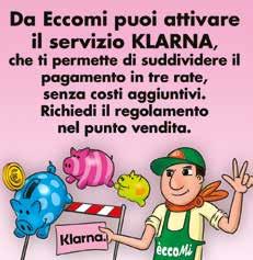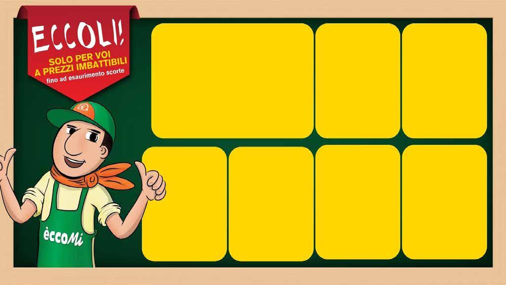 APERTI TUTTE LE DOMENICHE dalle 8,00 alle 13,00 Bancomat Fatture Ampio Parcheggio Carte di credito Dal Lunedi al Sabato ORARIO CONTINUATO 7,30 - 19,30 Telefono: 0547 - 632200 Via Giordano Bruno, 220 CESENA Dal Lunedi al Sabato ORARIO CONTINUATO 7,30 - 19,30 Telefono: 0547 - 682900 Via Emilia, 2062 (località Ponte Ospedaletto) LONGIANO Telefono: 0547 - 600541 Dal Lunedi al Sabato ORARIO CONTINUATO 7,30 - 19,30 Via Romea, 1100 CESENA www.eccomisupermercati.it seguici su INQUADRA CON IL TUO SMARTPHONE IL QR CODE E POTRAI SFOGLIARE IL VOLANTINO ONLINE. PASTA DI SEMOLA LA MOLISANA VARI TIPI KG 1 €1,39 MERENDINA TRECCIAMORE BAULI G 210 AL KG € 7,10 TONNO IN OLIO DI OLIVA AMATI G 80 X 3 AL KG € 8,28 DETERSIVO LIUIDO SPUMA SCIAMPAGNA 16LAVAGGI TOVAGLIOLI DAYLY 180 PZ POLPA DI POMODORO FINE O PASSATA JOLLY COLOMBANI G 390 AL KG € 8,28 OLIO MIX PER FRIGGERE COAL L 1 €1,49 €1,99 €1,29 €1,15 €0,49 €1,69