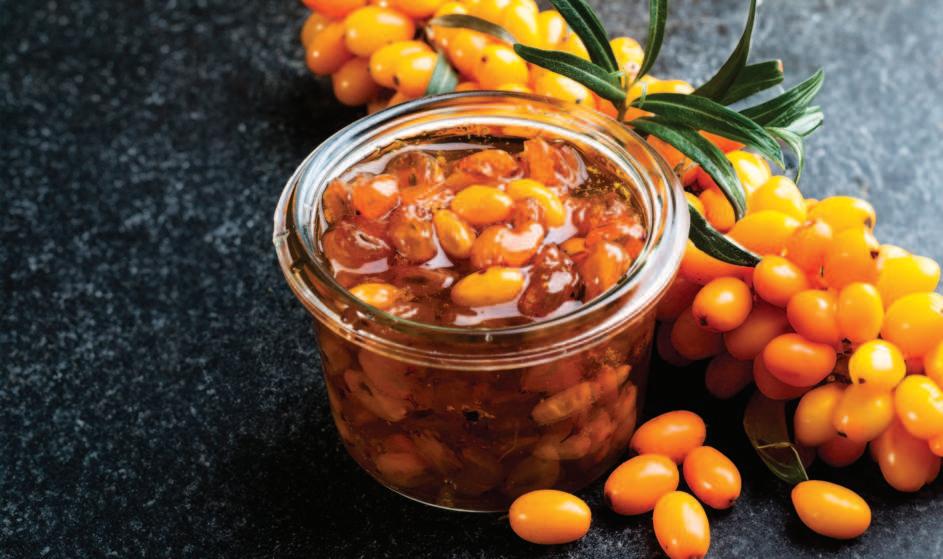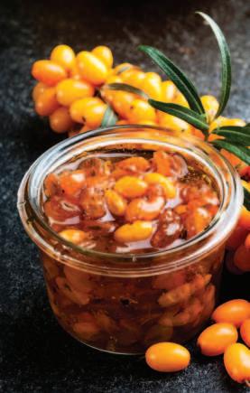 Per prima cosa, lavare accuratamente le bacche sotto l'acqua corrente, quindi tamponarle con un canovaccio pulito. Lavare e sbucciare la mela, eliminare il torsolo, tagliarla a cubetti regolari. A parte, trasferire le bacche di olivello in una pentola piena d'acqua e lessarle per venti minuti circa, finché i frutti risulteranno morbidi.
