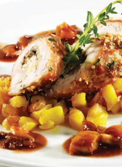 A cottura ultimata, lasciare riposare per una decina di minuti e tagliare il rotolo di maiale ripieno a fette uniformi. Servire con il fondo di cottura.