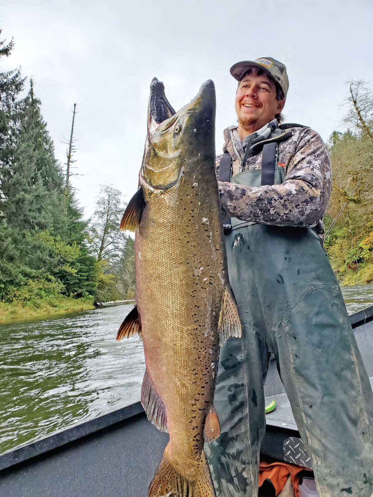 Fall runs are famous in places like the Columbia, the rivers that feed Tillamook Bay and others. Chinook push into the main stems and larger tributaries of many coastal rivers and as far up them as the water will allow. Pelland said backtrolling plugs tempts these big sh in the rivers. He’s caught 20-, 30- and 40-pound kings,