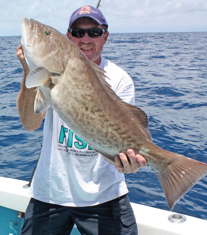 e only problem I have with the live or frozen minnows is everything on the bottom will give them a whack, and you wind up catching a lot more snapper and smaller bass than if you use a larger live bait. We almost always have live pin sh from the marina that eliminate most of the trash bites. If you have a larger pin sh, grass grunt or sailor’s choice on the jig, nothing but larger bass, grouper, jacks and big snapper can put it in their mouth. I like to speci cally target grouper by putting the larger live baits down on the jig that eliminate the undesirable bites. Of course, this is a very attractive bait to the sharks, also. Every now and then you have to pay the “tax man” in a grey suit, but that’s just the chance I take. Check out some of the rigging and shing videos on the website or on youtube to see what I’m talking about.
