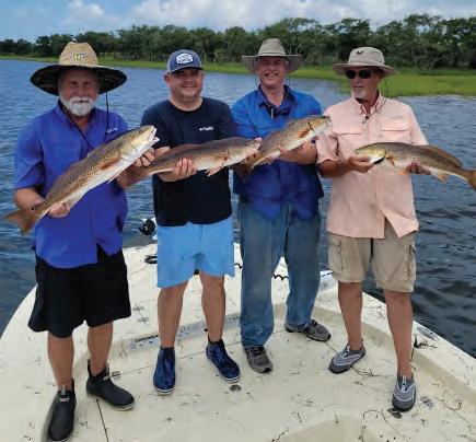 Less boat tra c means shing the mouths of bayou drains is wide open. I avoid these areas for safety reasons when there’s heavy boat tra c. I just don’t like boats driving over my lines or waking me, which is what happens if you sh in a boat lane during peak season. I like drains in back lakes this time of the year, because they hold “the big three”: trout, red sh and ounder.
