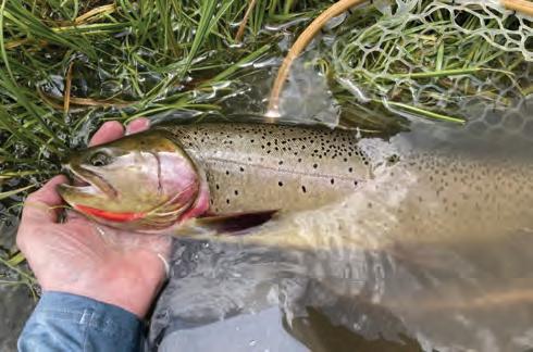 down and the trout become a bit more active throughout the river, instead of seeking thermal refuge in the depths of the river bottoms. Early mornings tend to be the most opportunistic times to fish, prior to the heat of the day warming the waters, and the fish returning to the depths. Fish can be very wary at times, with gin clear water conditions, low river flows and heights, and minimal hatching bugs, so lengthened leaders and smaller diameter tippet sizes can lead to a great day. Longer casts with drag free drifts will be an essential asset, as well, to these wary and skittish fish.
