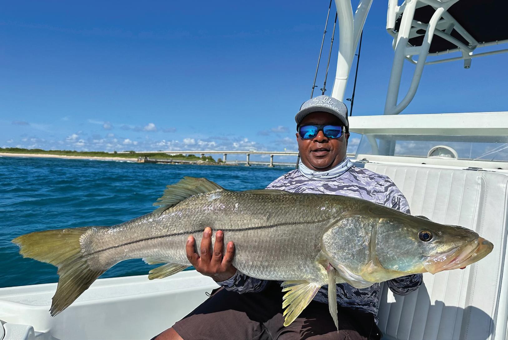e best shot at a big snook is out in the inlet, where White will anchor up and drop baits to the bottom in hopes of just three or four bites over the course of a trip. e payo might be a snook in the 35- to 38-inch range with an outside shot at a 40-incher. ese sh might weigh 15 to 20-plus pounds.