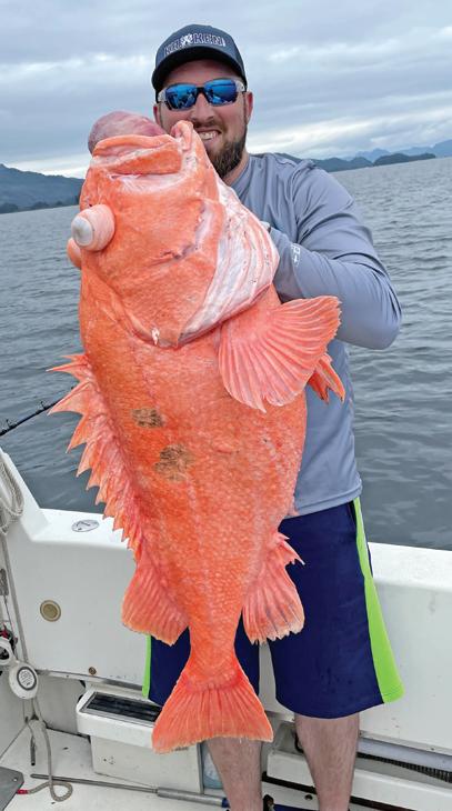 DeGra caught the sh from Prince William Sound on July 28 with his ancée and some friends from a rented boat. DeGra was shing 1,000 feet deep with a conventional (non-electric) Avet 2-speed 30/2 reel, a custombuilt Adventurous Custom rod built by Derwood Roberts, 3-pounds of weight, 80-pound braid and a circle hook baited with salmon and herring. e previous Alaska state record shortraker rock sh weighed 39.1 pounds. It was caught by Henry Liebman in 2013. e IGFA all tackle world record weighed 44.1 pounds. It was caught in 2017 by Angelo Sciubba at Cross Sound, Alaska, but it’s not recognized in the Alaska Game and Fish list. For more information, see www.adfg.alaska.gov.