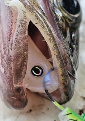 I will speci cally target ounder in these areas in September and early October. Since the spring migration, these tasty morsels have been working their way as far back in the marsh as they could get. With autumn around the corner, they start to congregate in these drains. Outside of the fall run, many anglers do not target these ground huggers. With the pressure light,