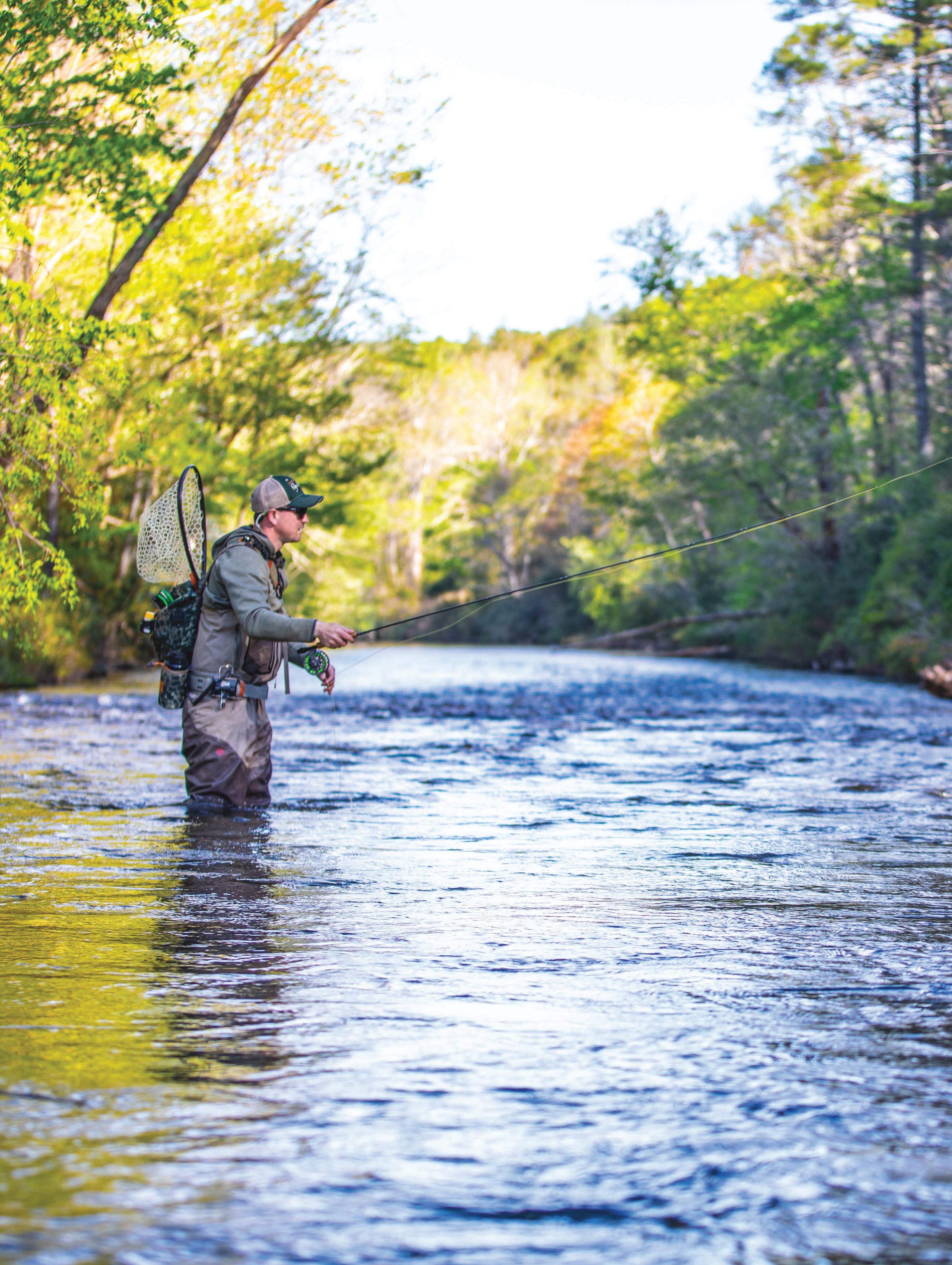 Here in East Tennessee, we are currently bringing 5- and 6-weight y rods and dri shing topwater poppers for spotted and smallmouth bass on several local rivers. We are catching some nice sh, and we’re also catching very good numbers, all on top.