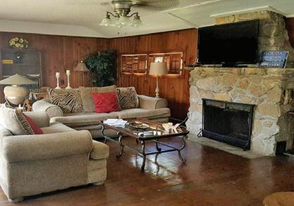 Kingfsh Lodge includes a wide screenTV and bar for small gatherings