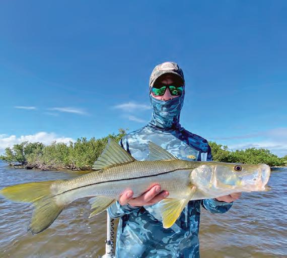 Capt. Adam White, of St. Lucie Flats Fishing on Florida’s Treasure Coast, said this time of year o ers good snook and tarpon shing in his area. Whether he’s shing bridges at night or inshore structure during the day, there are a lot of snook to be caught around Fort Pierce and a lot of places to catch them.