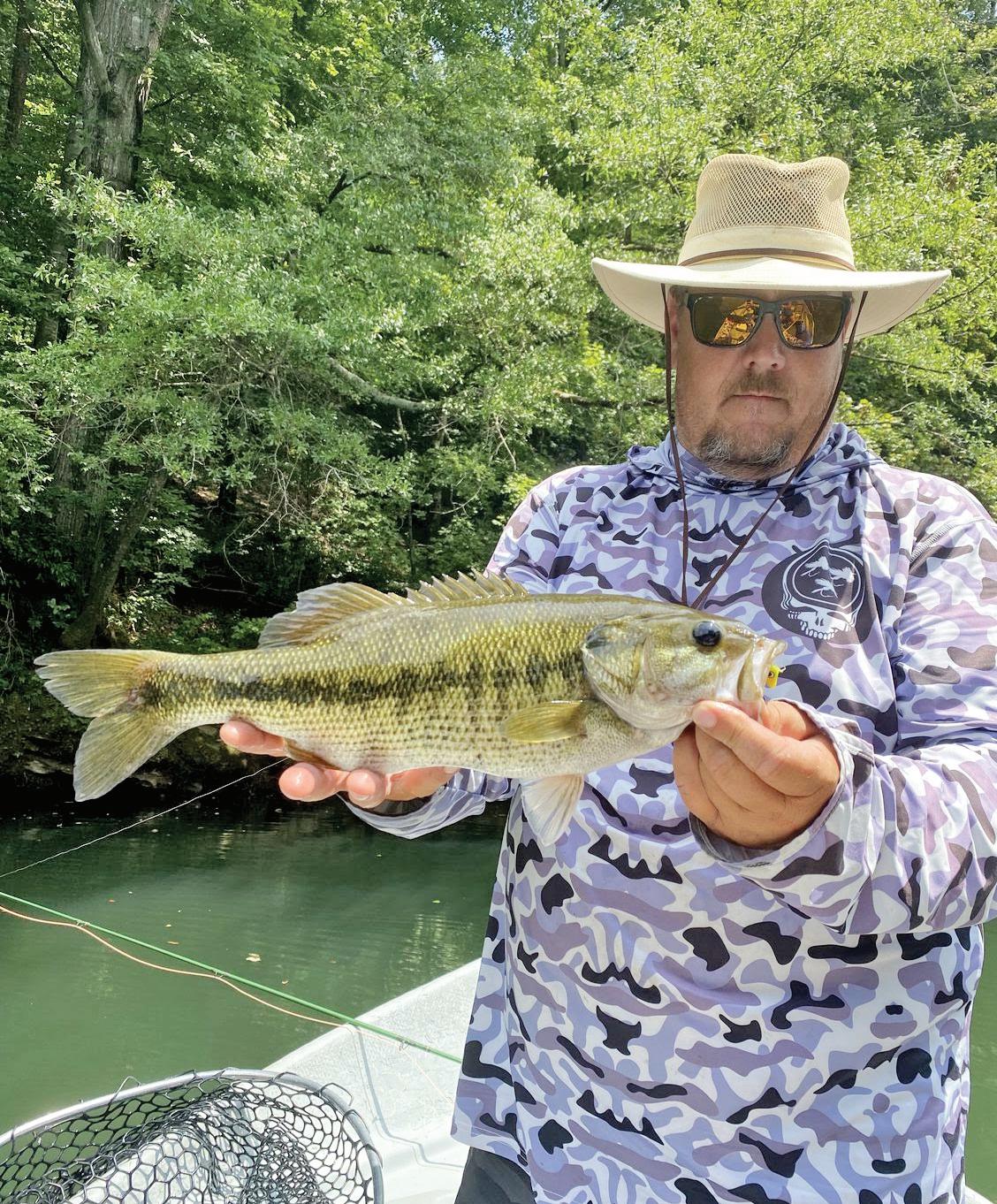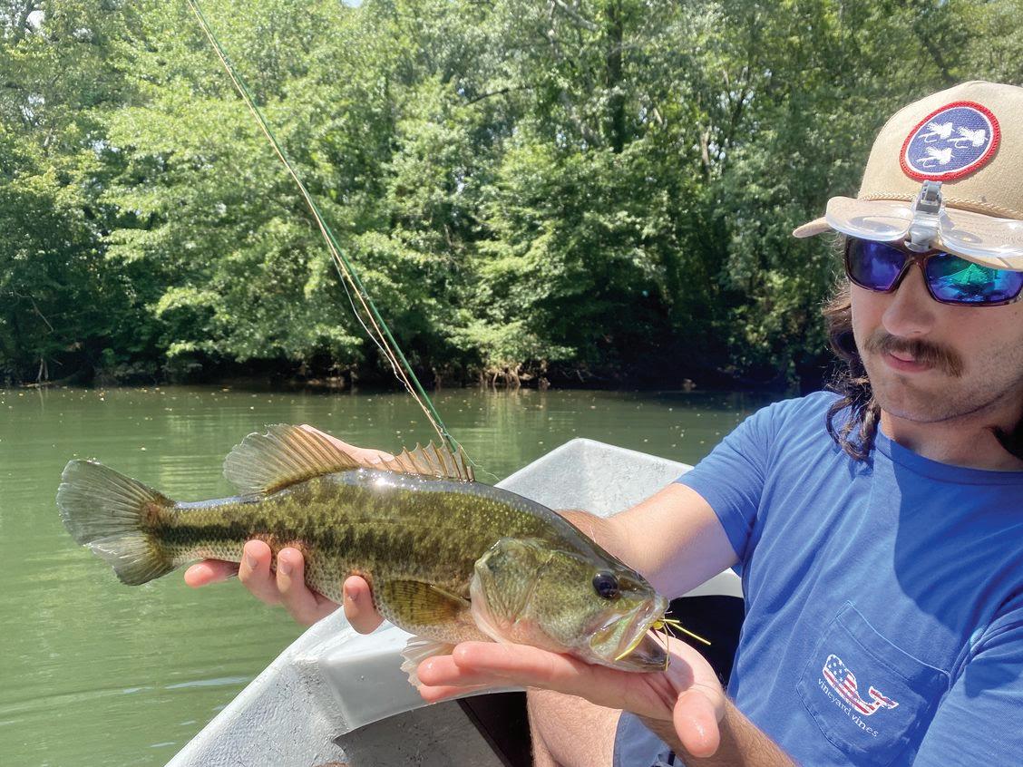 Here in East Tennessee, we are currently bringing 5- and 6-weight y rods and dri shing topwater poppers for spotted and smallmouth bass on several local rivers. We are catching some nice sh, and we’re also catching very good numbers, all on top.