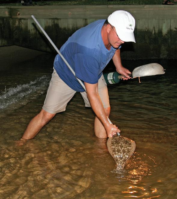 Because they are short lived and rare, jubilees are a source of excitement for some Mobile Bay families who send word out to friends and loved ones to drop what they’re doing and go collect some seafood. However, Rainer warned in his column that a jubilee is not a free-for-all. Normal size and creel limits remain in e ect during the phenomenon. Alabama Marine Resources Division Director Scott Bannon said most species survive to swim or scuttle away when dissolved oxygen levels return to more normal levels.