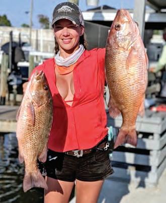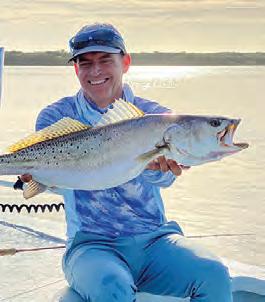 Less boat tra c means shing the mouths of bayou drains is wide open. I avoid these areas for safety reasons when there’s heavy boat tra c. I just don’t like boats driving over my lines or waking me, which is what happens if you sh in a boat lane during peak season. I like drains in back lakes this time of the year, because they hold “the big three”: trout, red sh and ounder.