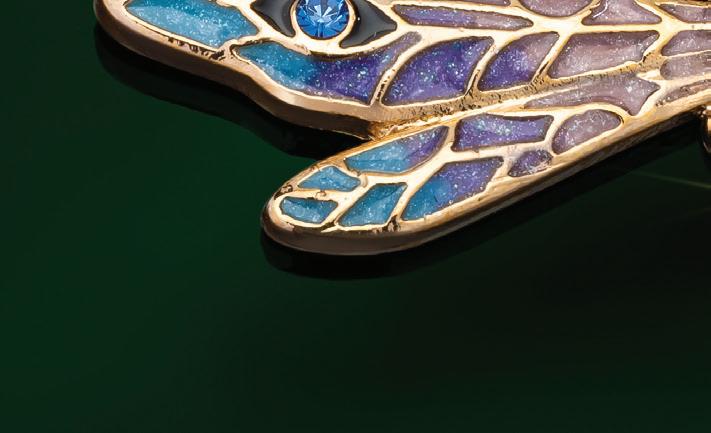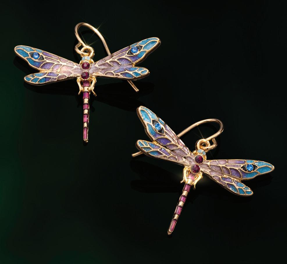 True artisanship in Austrian crystal and yellow gold. is necklace and earring set features gorgeous multicolored enamel paired with Austrian crystals and a yellow gold nish. Ask any jeweler and they’ll tell you it takes true artisanship to properly blend the blues and purples found in this enamel. While art nouveau dragon ies are hard to come by, we’re helping to repopulate their numbers with this artfully stylized depiction of some of nature’s smallest wonders!