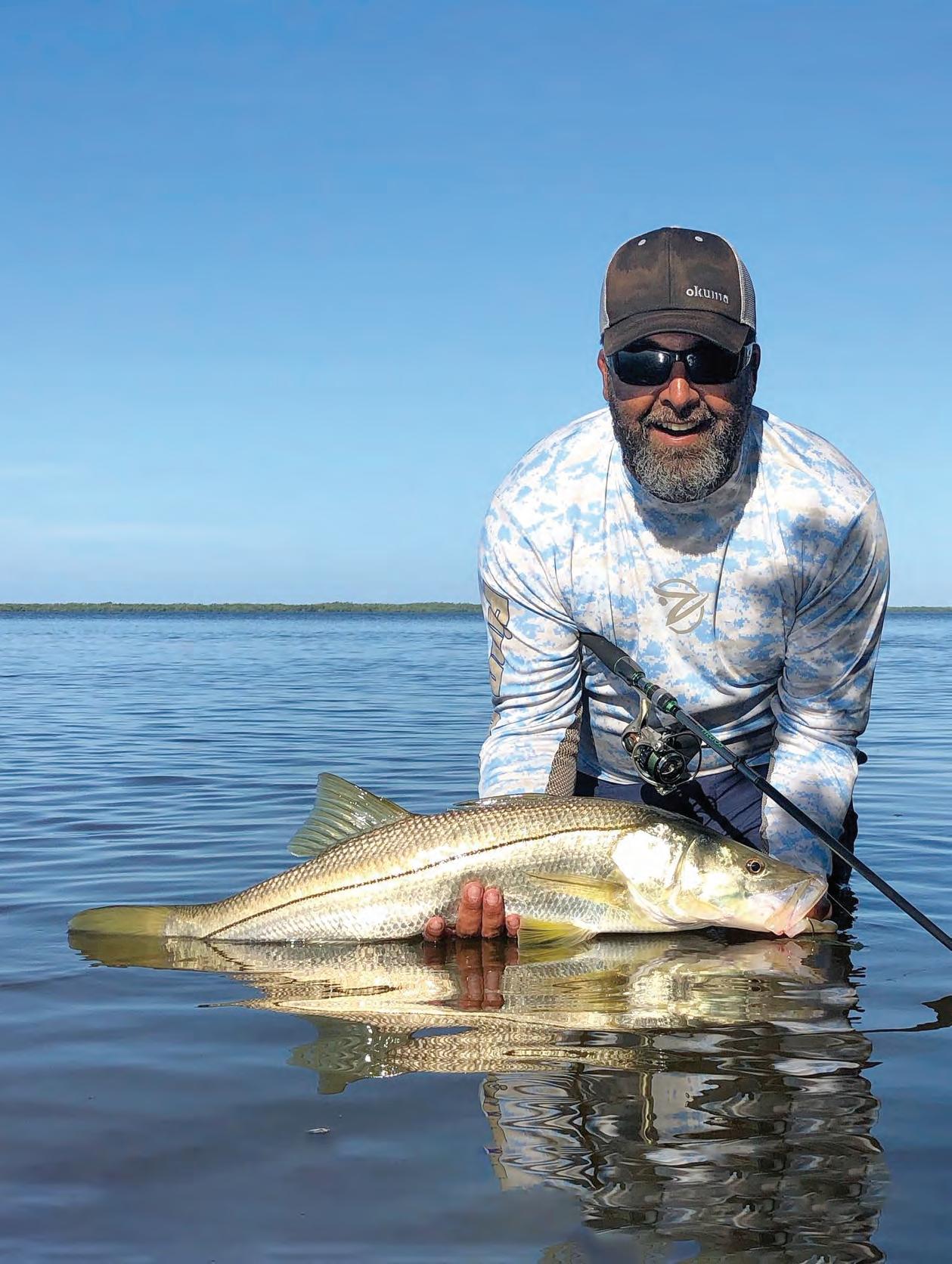Run-and-gun tactics make for fun shing, with spurts of activity between quick boat rides. Capt. White said he can’t guarantee a one- sh-perperson snook limit because the 28- to 32-inch slot is a small window, but he said anglers can expect consistent action from under-slot snook or a shot at a big over-slot sh.