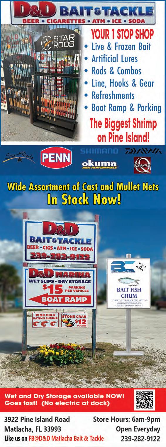 Pr ior to this however, April tarpon will be found cruising northward and along the beaches. They are cruising the passes, such as Wiggins, Big Carlos, Redfish and Captiva Passes and numerous areas of Pine Island Sound. These fish are migrating in schools from the south and are feeding on various baits in their paths. Live/dead baits of choice include blue crab, mullet, pinfish, threadfin, pilchard, mackerel and catfish fillets. Effective techniques include weighted presentations on the seabed or under corks/floats. Use strong equipment, such as 60008000 series reels with at least 30-40lb. line rated rods. I use 65lb. rated test line and 60-80lb. rated leaders to do the job. Also, use 6/0-9/0 circle hooks.