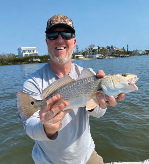 Red!sh will be my primary target since I spent the winter targeting trophy trout. As always, bait will be the key to a successful outing. Since the size of the bait will be small, I like to have two characteristics in my lure. ey are small, roughly 3”, and have a clear sparkling color. is helps produce in most situations because the bait is tiny, maybe smaller than my lure. at is why I like the transparent re$ective colors; they disguise the lure’s size, making it appear smaller.
