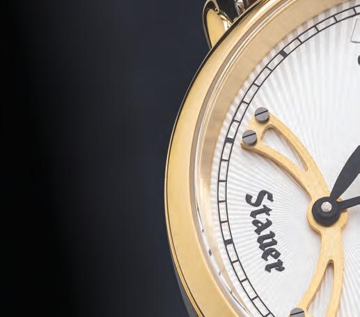 With its remarkable retrograde hour and minute indicators, sunburst guilloche face and precision movement, this design is truly one of a kind. What does retrograde mean? Instead of displaying the hands rotating on an axis like most watches, the hands sweep in a semicircle, then return to their starting point and begin all over again.