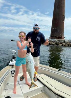 Since the endangered, gag grouper and American red snapper are o!-limits this month, it would be a good time to go deeper and/or change up your tactics to target di!erent species. For example, go ahead and catch your three scamp/red grouper combo, then switch over to smaller baits and smaller circle hooks on chicken rigs to target beeliners, trigger sh grunts and seabass.