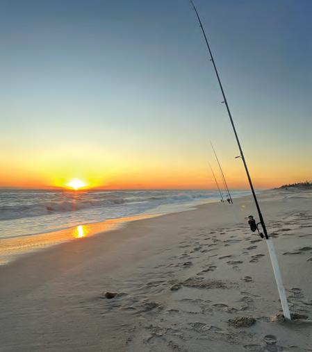 Our daily rhythm was dialed in: sh at rst light, break for lunch and a nap, then hit the water again at dusk. On our rst morning, we were thighdeep before sunrise, casting into the mystery of the early light. Within minutes, I hooked a brute. It crushed my lure and made a blistering run—until my line snapped clean. Devastated, but not alone; the others were tight on steady 20–25 inchers. We spot-hopped the rest of the morning, landing a solid variety of sh, then rested up, ready to tangle with giants again at dusk.