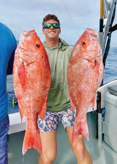Since the endangered, gag grouper and American red snapper are o!-limits this month, it would be a good time to go deeper and/or change up your tactics to target di!erent species. For example, go ahead and catch your three scamp/red grouper combo, then switch over to smaller baits and smaller circle hooks on chicken rigs to target beeliners, trigger sh grunts and seabass.