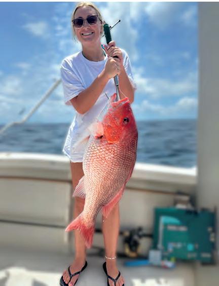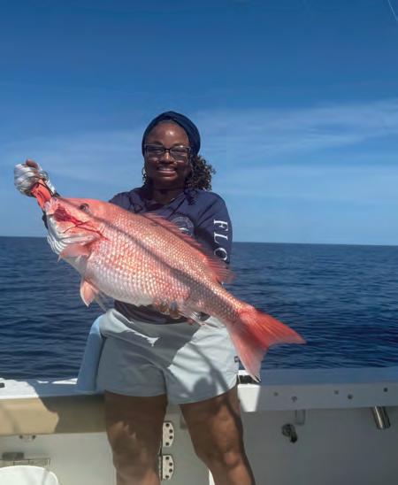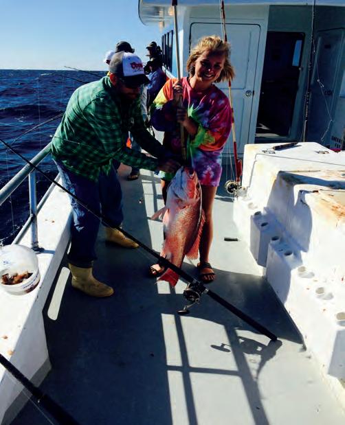 Since the endangered, gag grouper and American red snapper are o!-limits this month, it would be a good time to go deeper and/or change up your tactics to target di!erent species. For example, go ahead and catch your three scamp/red grouper combo, then switch over to smaller baits and smaller circle hooks on chicken rigs to target beeliners, trigger sh grunts and seabass.