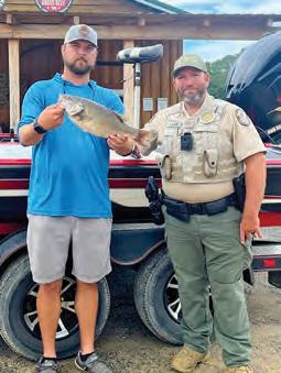 O!cer Wil Raker certi ed a new state record spotted bass, caught by angler Joe Durden from Blountstown.