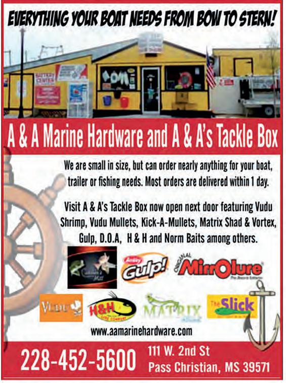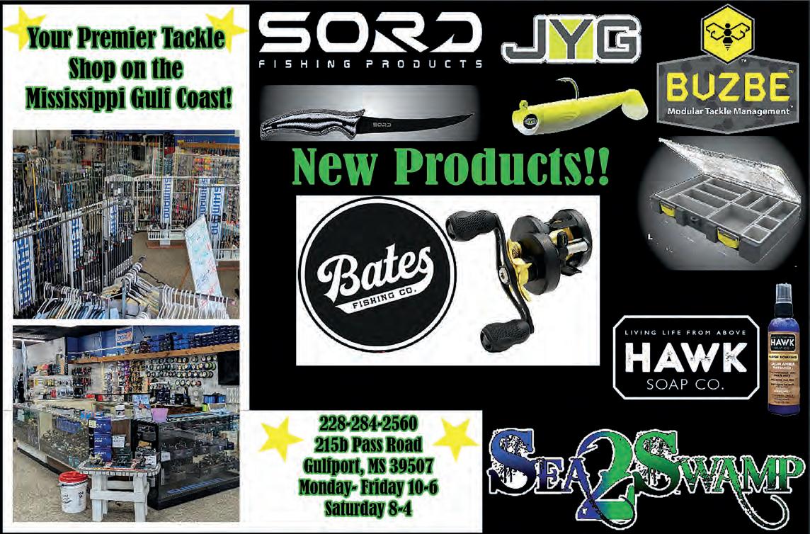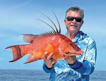 Since the endangered, gag grouper and American red snapper are o!-limits this month, it would be a good time to go deeper and/or change up your tactics to target di!erent species. For example, go ahead and catch your three scamp/red grouper combo, then switch over to smaller baits and smaller circle hooks on chicken rigs to target beeliners, trigger sh grunts and seabass.